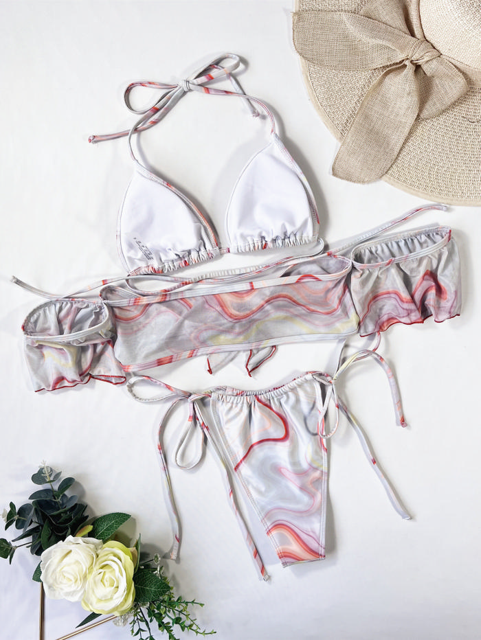 (Real Image)2022 Styles Women Fashion INS Styles Print Mesh Tank Tops + Bikini Set 3 Pieces SwimwearSKU: #OEM6504-1
