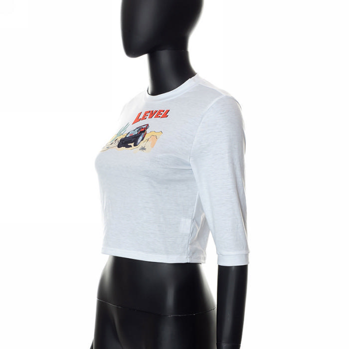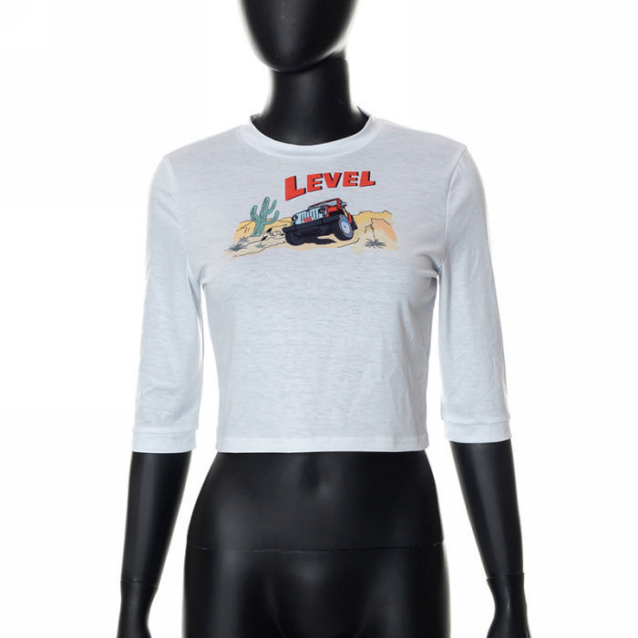 (Real Image)2022 Styles Women Fashion INS Styles Print Midi Sleeve TeeSKU: #CF68080-1