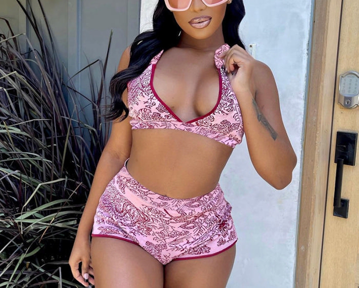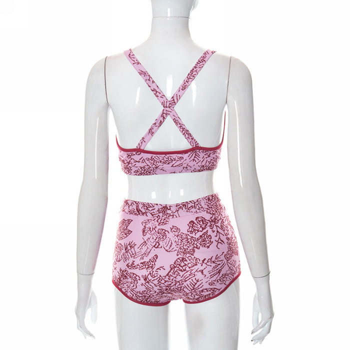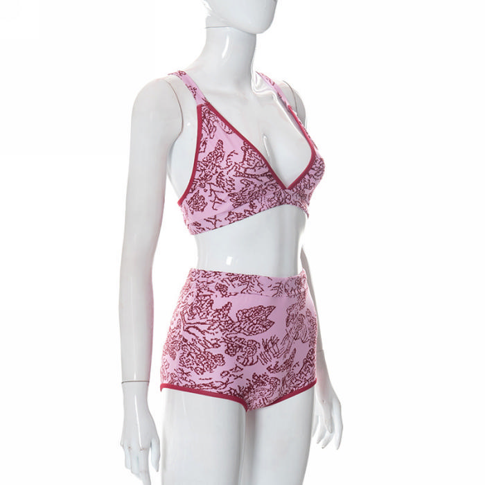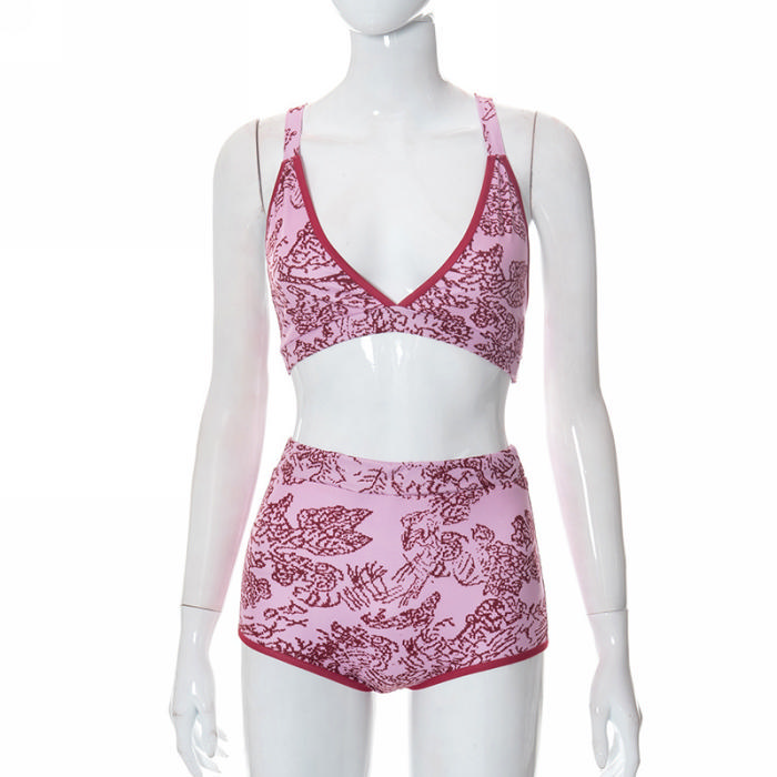 (Real Image)2022 Styles Women Fashion INS Styles Print Pink Two Piece SuitSKU: #CF68055-1