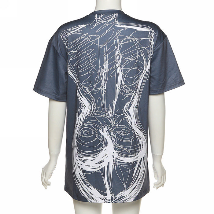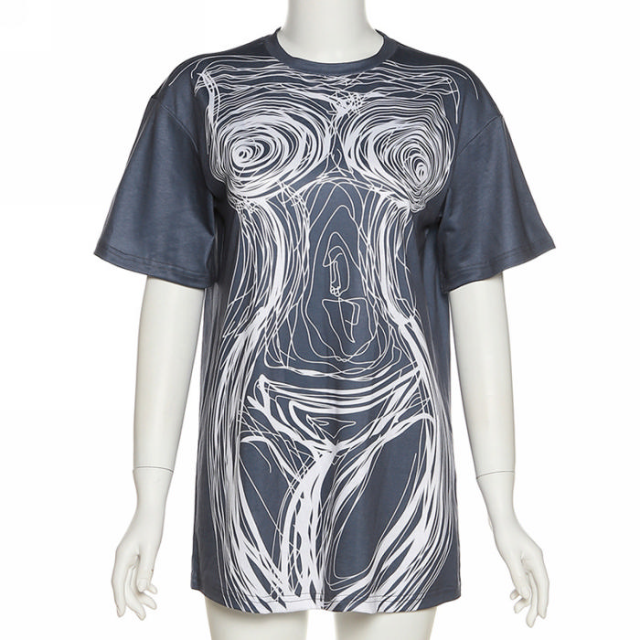 (Real Image)2022 Styles Women Fashion INS Styles Print Short Sleeve Casual Mini DressSKU: #CF49796-1