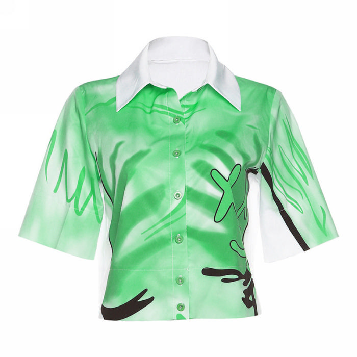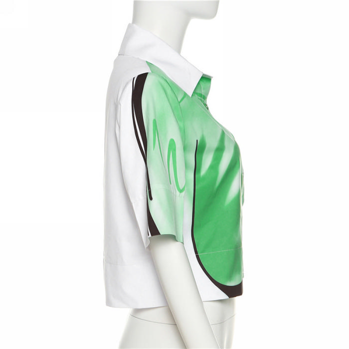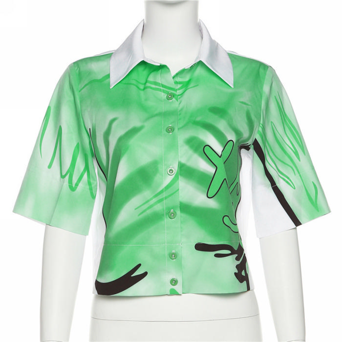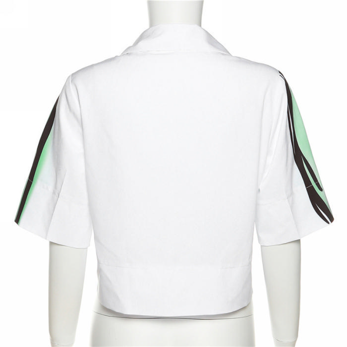 (Real Image)2022 Styles Women Fashion INS Styles Print Short Sleeve ShirtsSKU: #CF49718-1