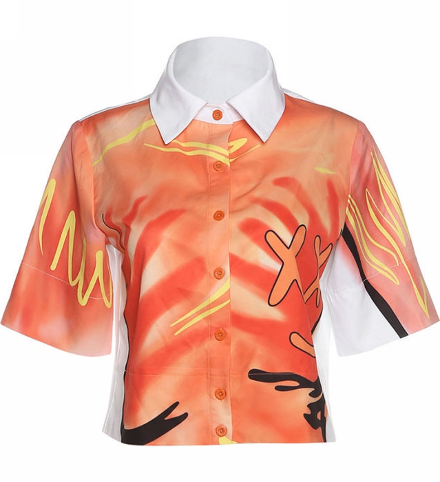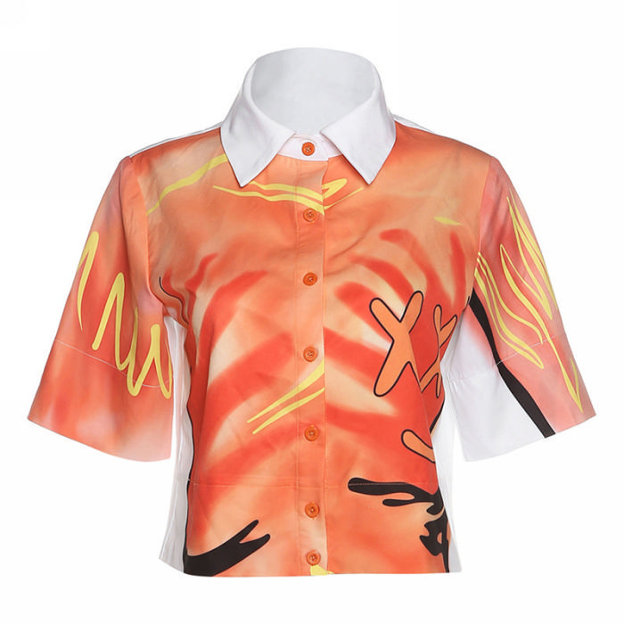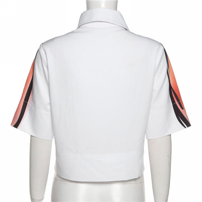 (Real Image)2022 Styles Women Fashion INS Styles Print Short Sleeve ShirtsSKU: #CF49718-4