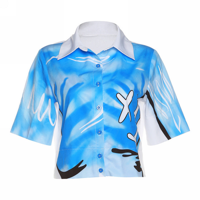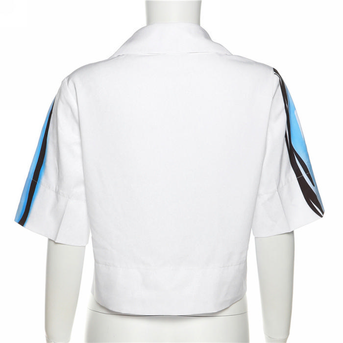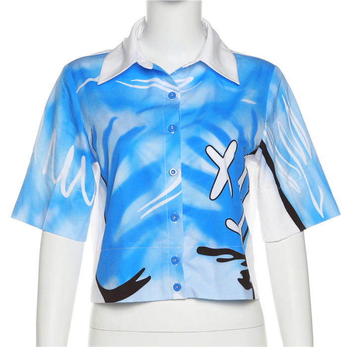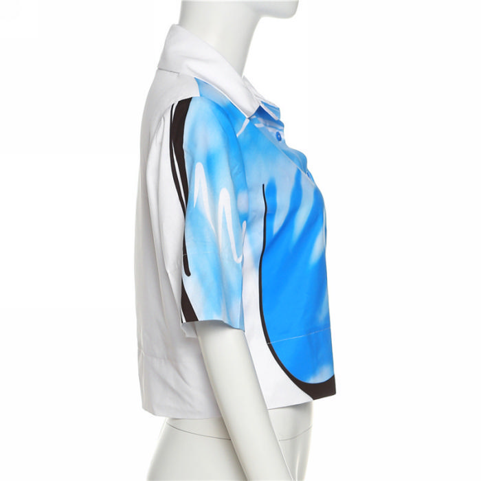 (Real Image)2022 Styles Women Fashion INS Styles Print Short Sleeve ShirtsSKU: #CF49718-2