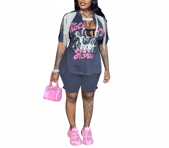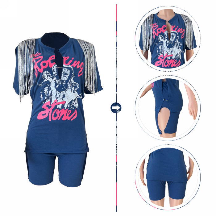 (Real Image)2022 Styles Women Fashion INS Styles Print Short Two Piece SuitSKU: #OM0223-1