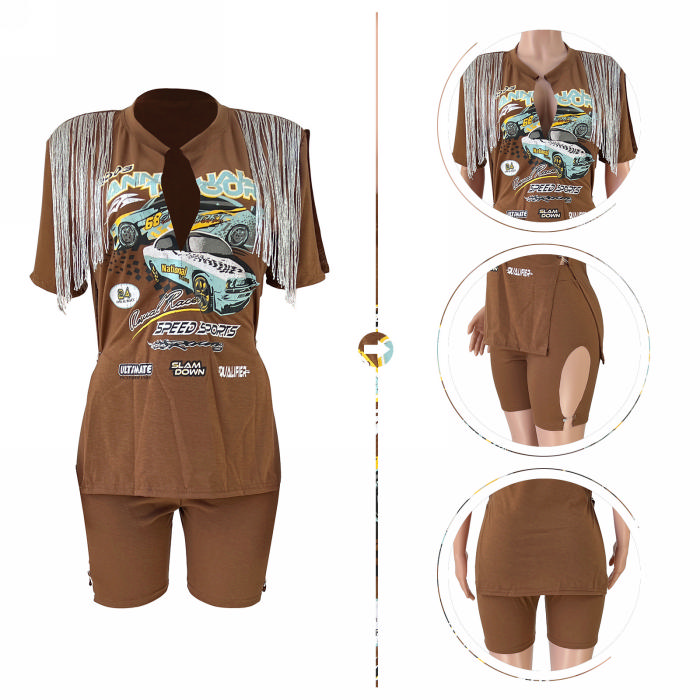 (Real Image)2022 Styles Women Fashion INS Styles Print Short Two Piece SuitSKU: #OM0223-3