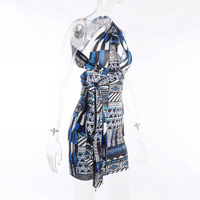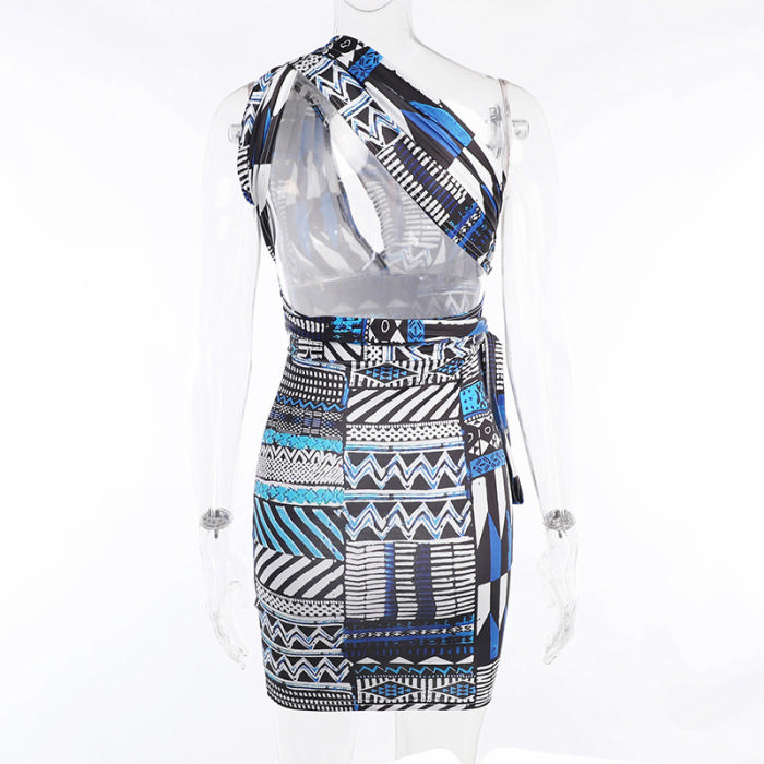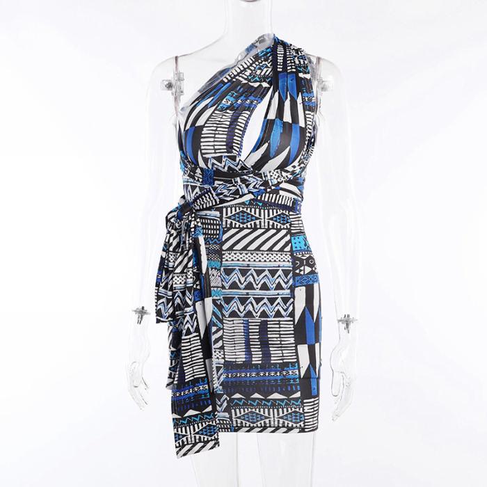 (Real Image)2022 Styles Women Fashion INS Styles Print Single Shoulder Club DressSKU: #XF92511-1