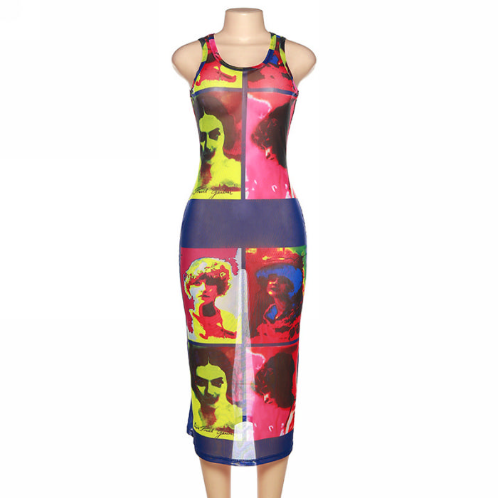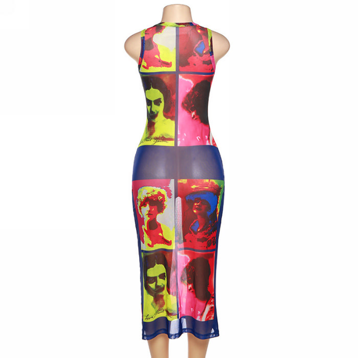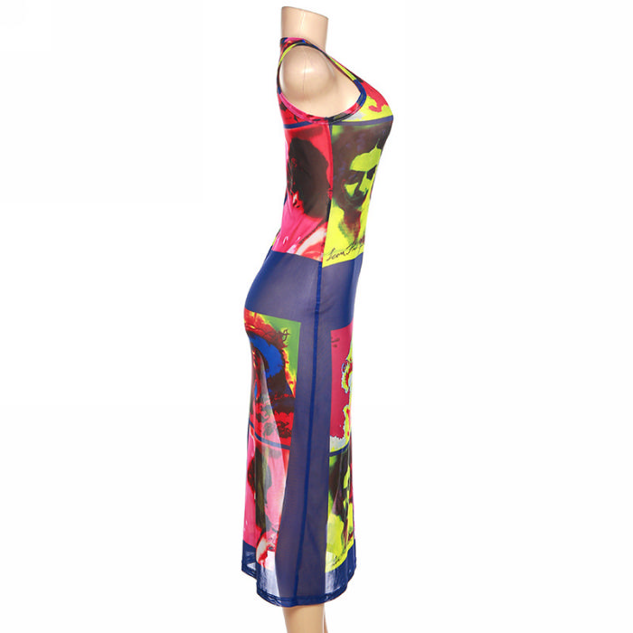 (Real Image)2022 Styles Women Fashion INS Styles Print Sleeveless Maxi DressSKU: #CF49762-1