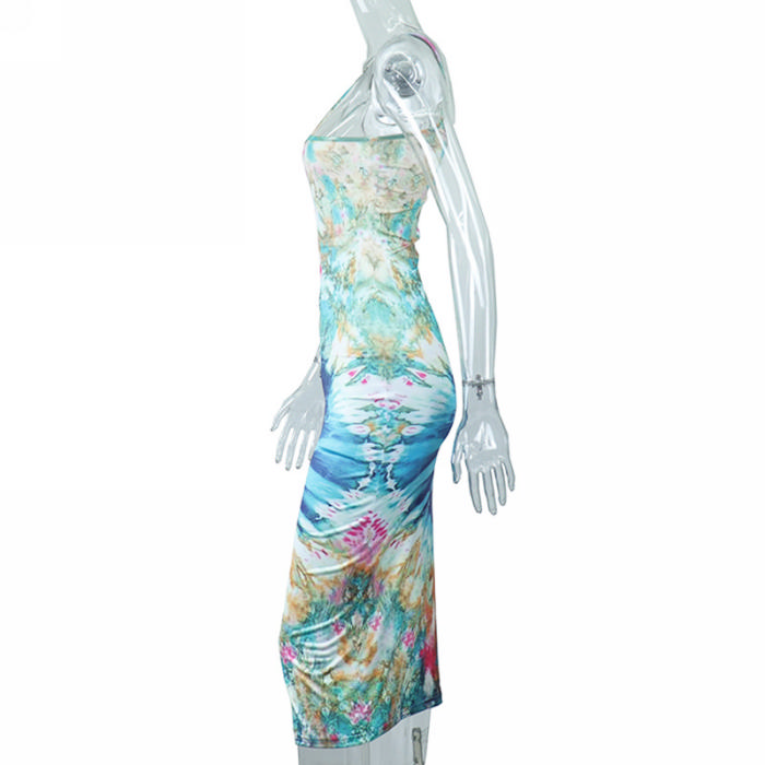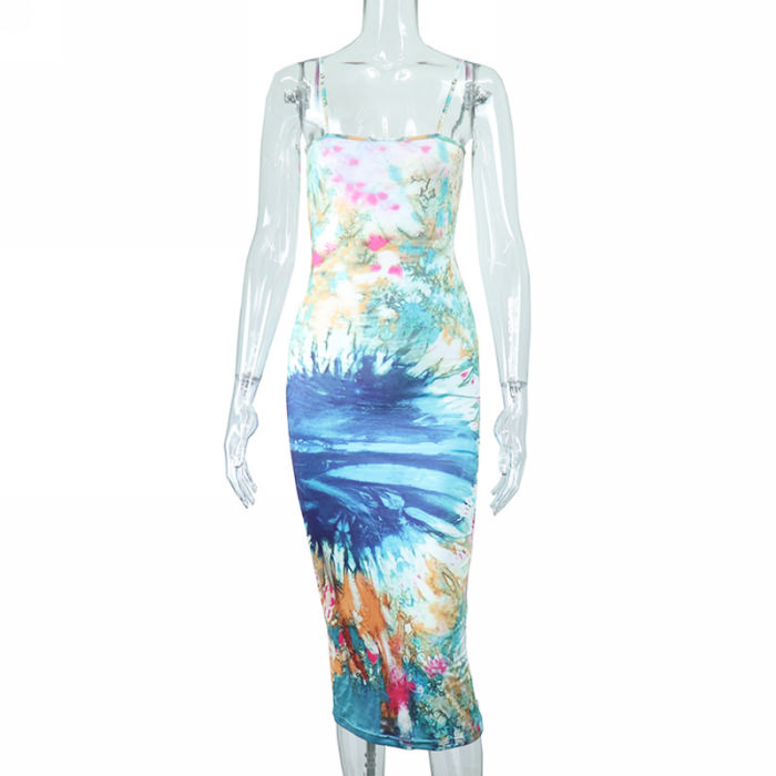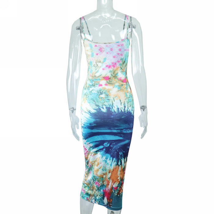 (Real Image)2022 Styles Women Fashion INS Styles Print Strap Maxi DressSKU: #CF67092-1