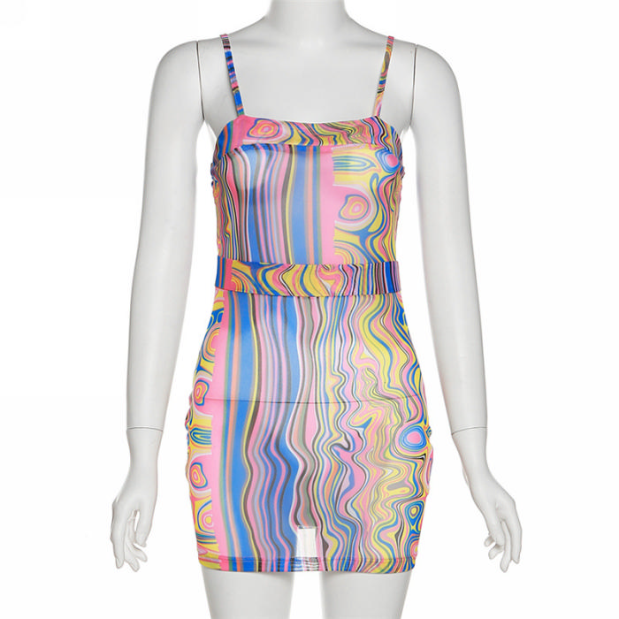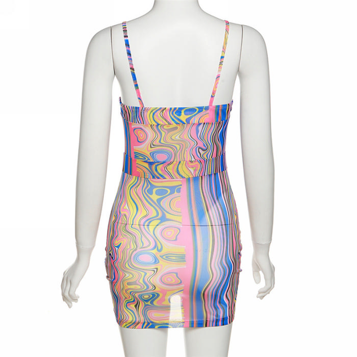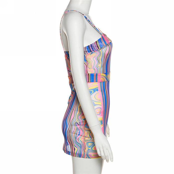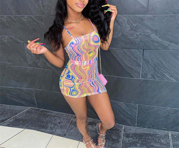 (Real Image)2022 Styles Women Fashion INS Styles Print Strap Mini DressSKU: #CF48716-1