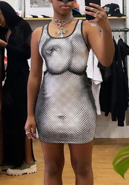 (Real Image)2022 Styles Women Fashion INS Styles Print Summer Mini DressSKU: #CF68078-1