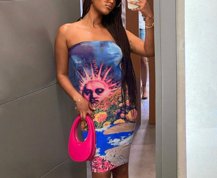 (Real Image)2022 Styles Women Fashion INS Styles Print Sunn Tube Summer DressSKU: #CF68013-1