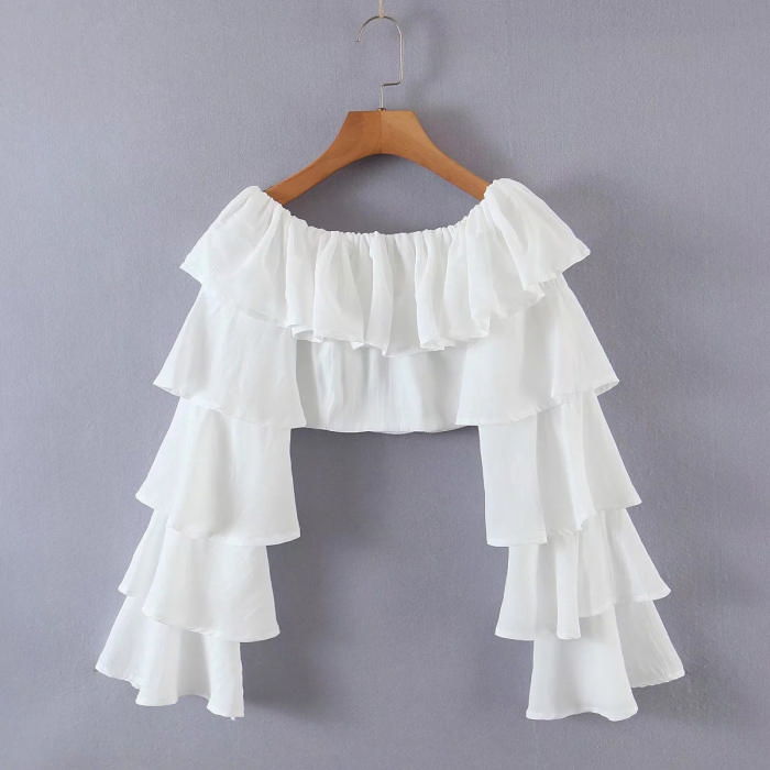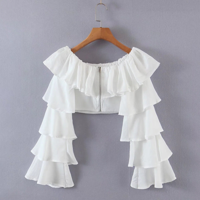 (Real Image)2022 Styles Women Fashion INS Styles Puff Long Sleeve Ruffle TopsSKU: #CF08801-1