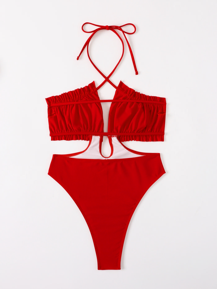 (Real Image)2022 Styles Women Fashion INS Styles Red Cut Out One Piece SwimwearSKU: #CF31178-1
