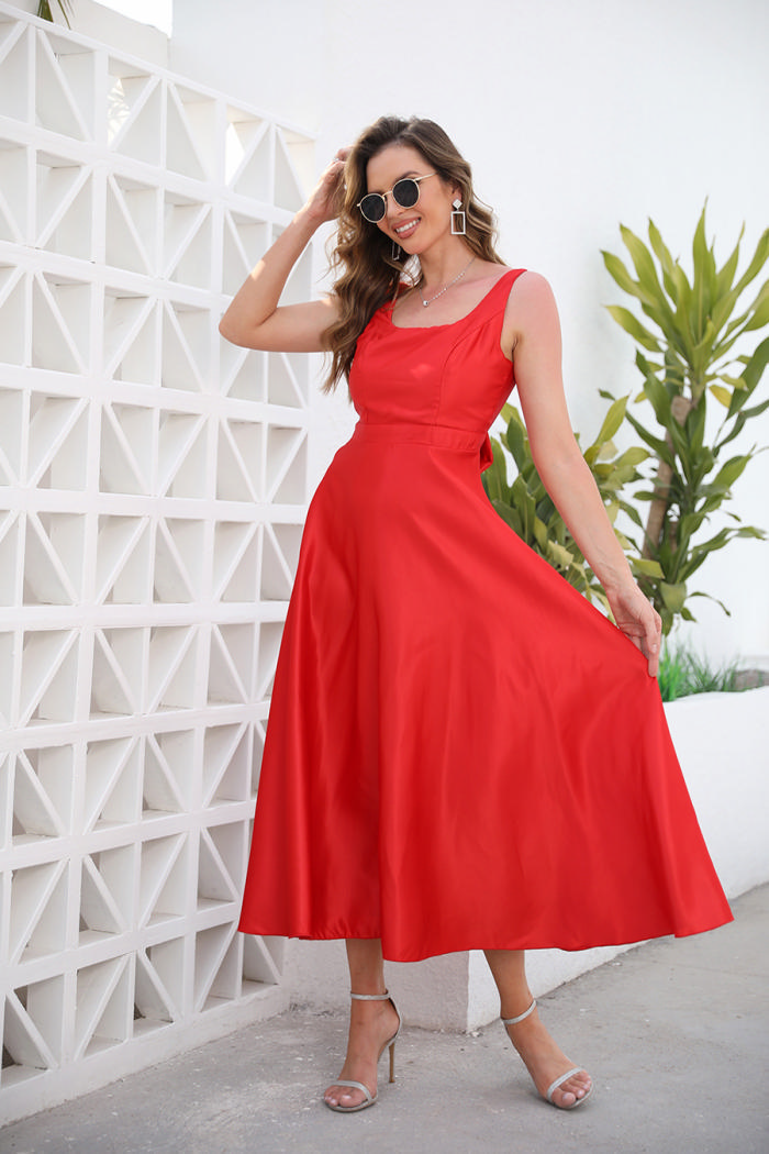(Real Image)2022 Styles Women Fashion INS Styles Red Hem Maxi DressSKU: #CF09074-1