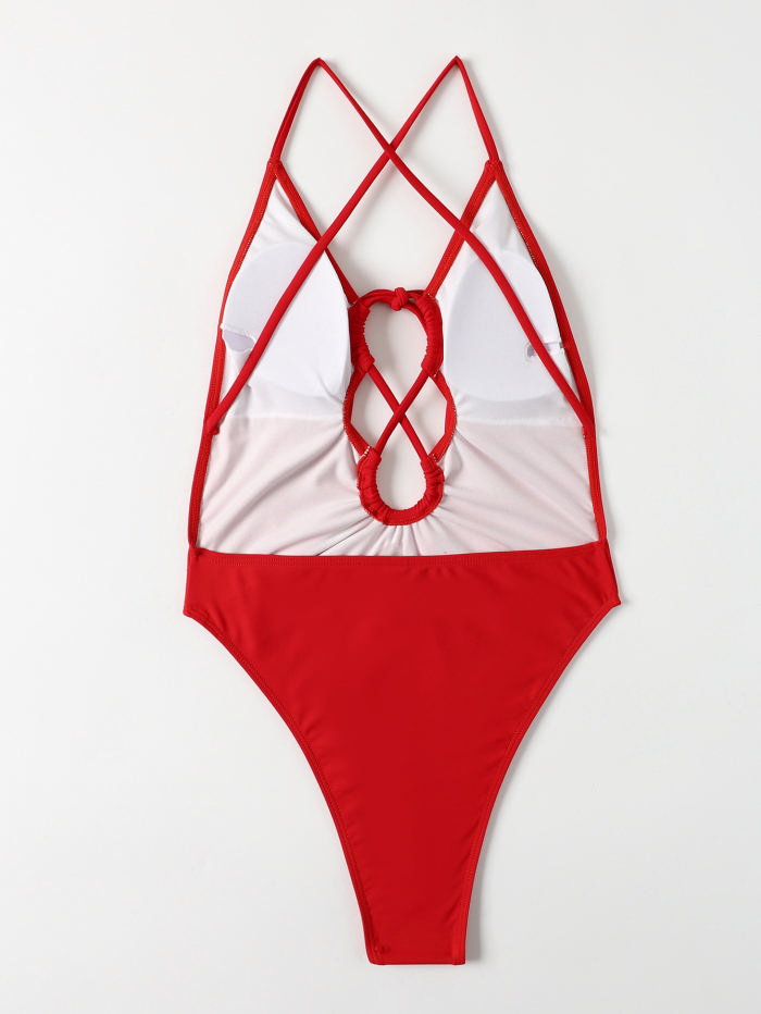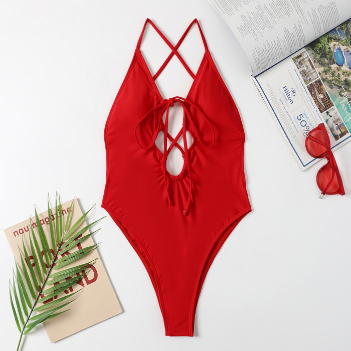(Real Image)2022 Styles Women Fashion INS Styles Red Lace Up One Piece SwimwearSKU: #CF31176-1