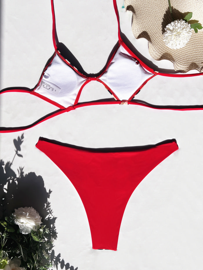 (Real Image)2022 Styles Women Fashion INS Styles Red&Leopard Contrast Color Bikini SetSKU: #CF60045-1