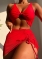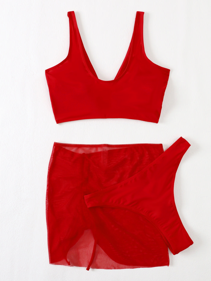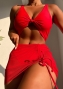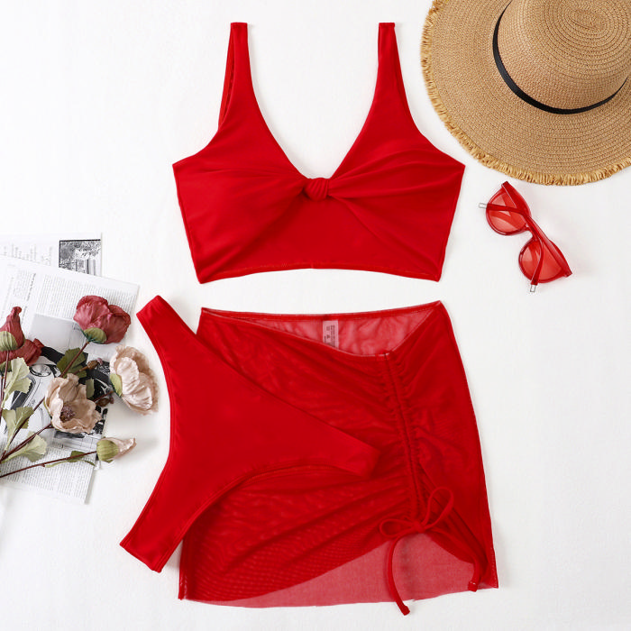 (Real Image)2022 Styles Women Fashion INS Styles Red Mesh Skirts + Bikini Set 3 Piece SwimsuitSKU: #CF31140-1