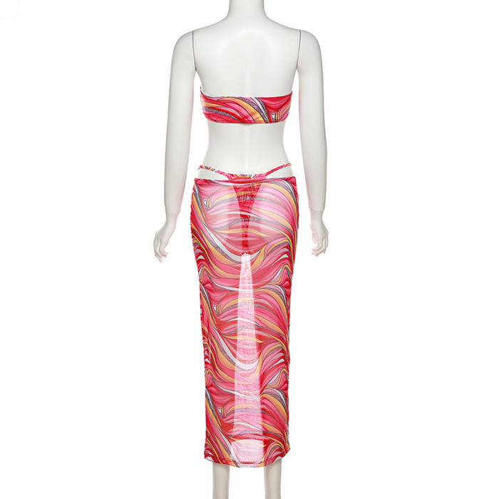 (Real Image)2022 Styles Women Fashion INS Styles Red Mesh Two Piece Dress Maxi DressSKU: #CF48720-1