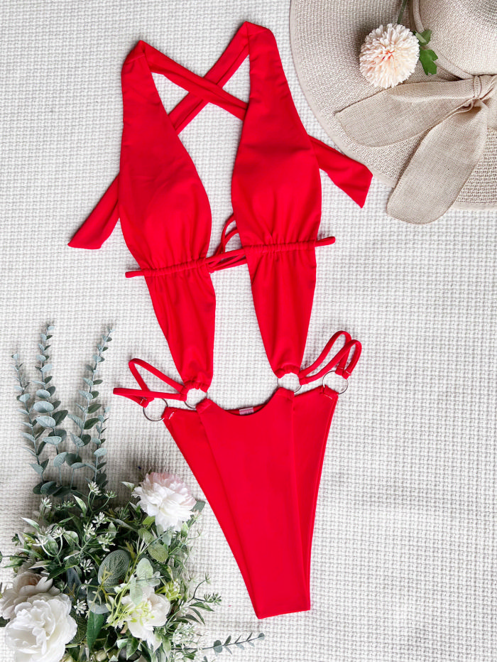 (Real Image)2022 Styles Women Fashion INS Styles Red One Piece SwimwearSKU: #CF60065-1
