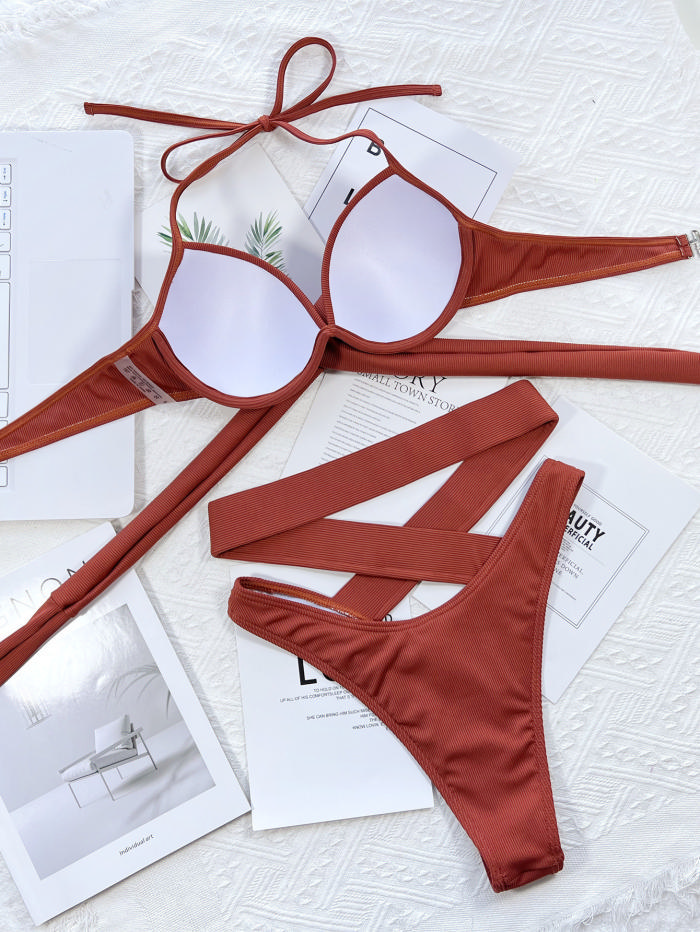(Real Image)2022 Styles Women Fashion INS Styles Rib Bikini SetSKU: #CF55046-1