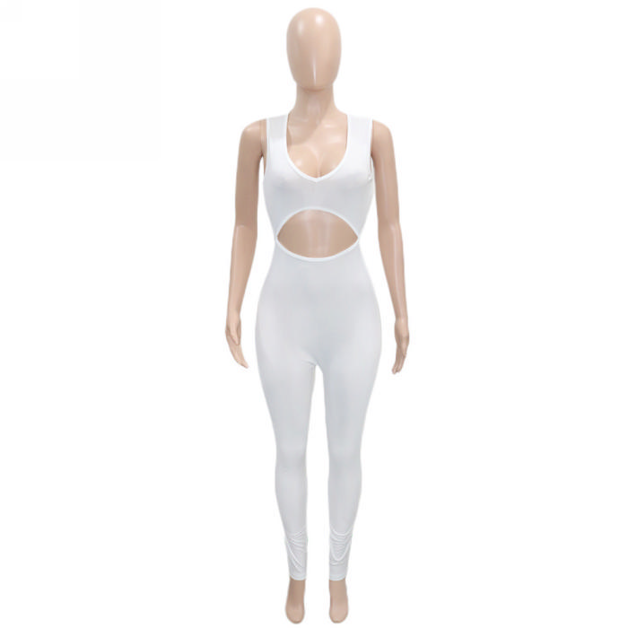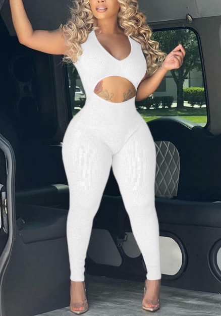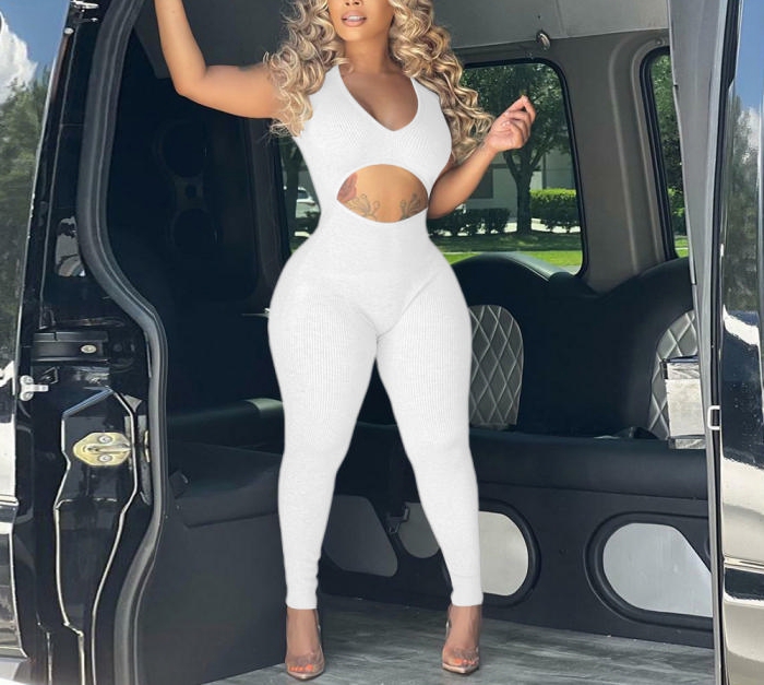 (Real Image)2022 Styles Women Fashion INS Styles Rib Cut Out JumpsuitSKU: #XF14882-1