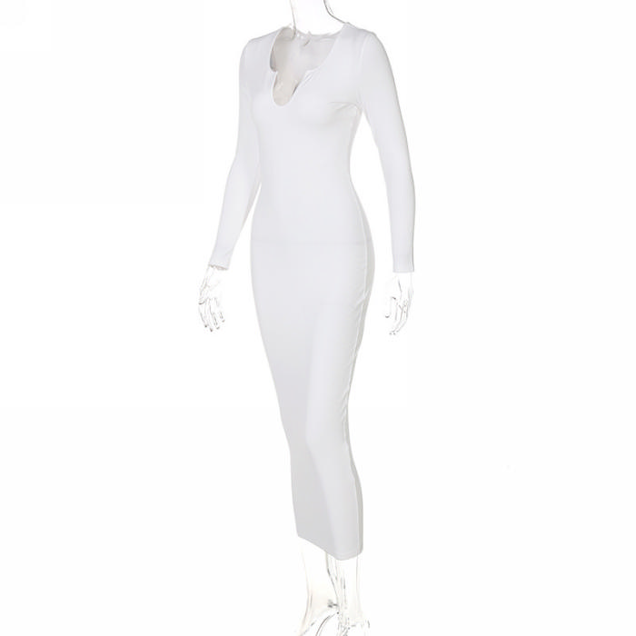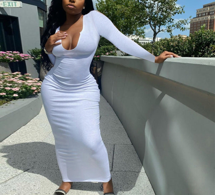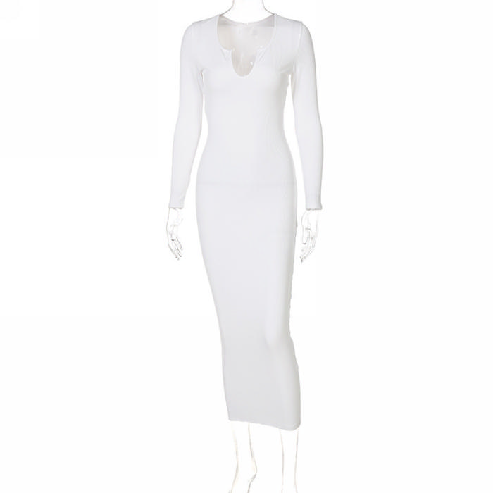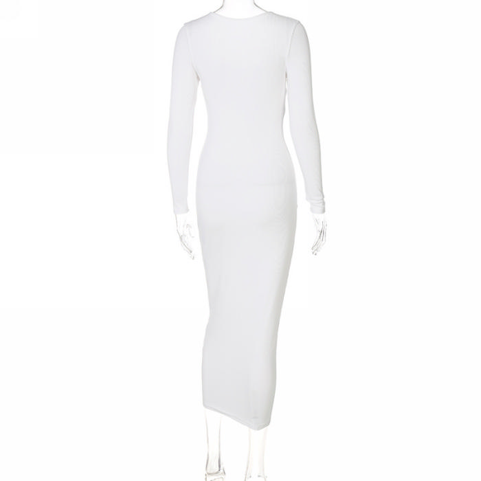 (Real Image)2022 Styles Women Fashion INS Styles Rib Long Sleeve Maxi DressSKU: #CF22632-1