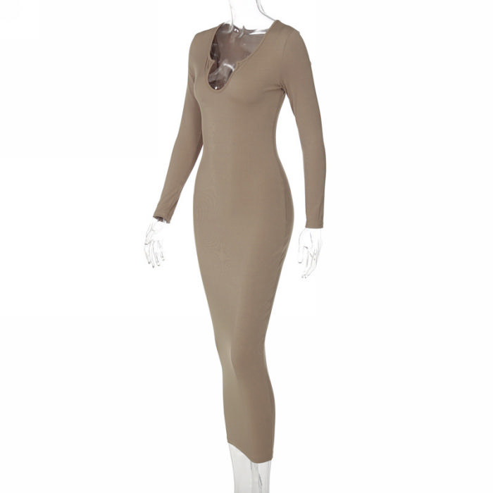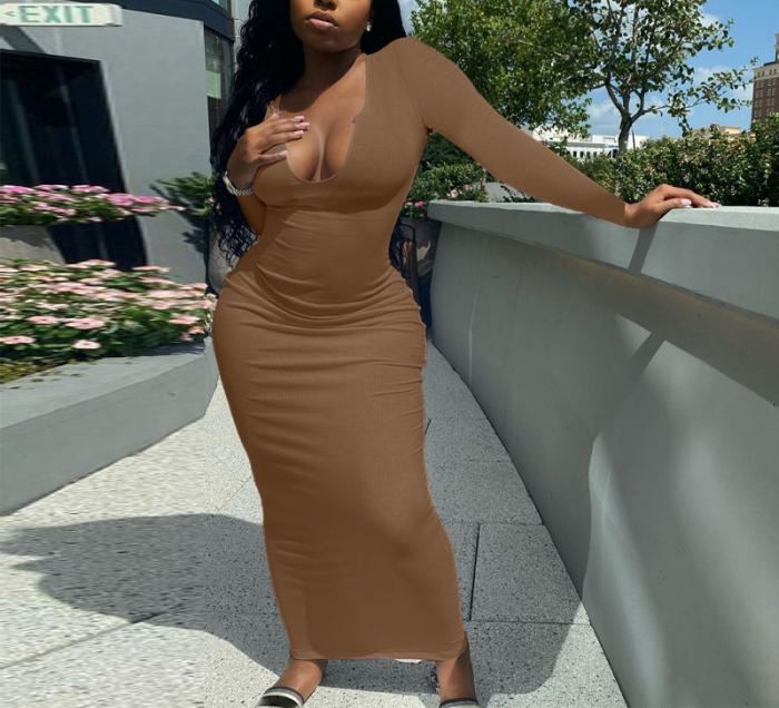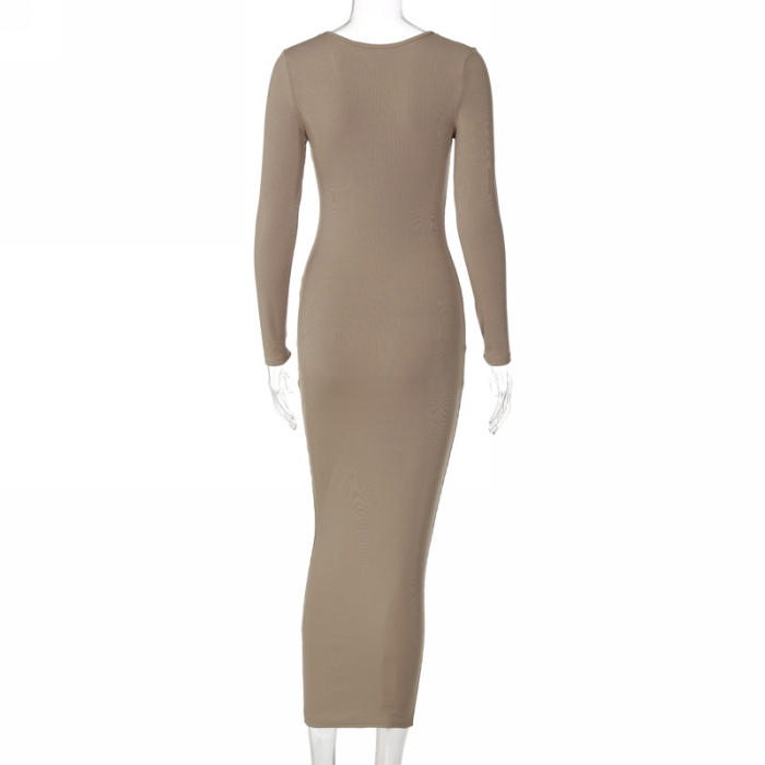 (Real Image)2022 Styles Women Fashion INS Styles Rib Long Sleeve Maxi DressSKU: #CF22632-5