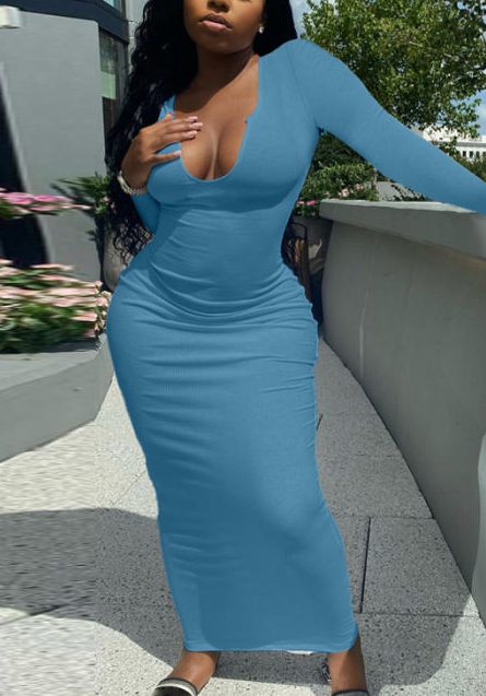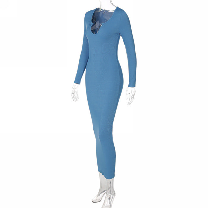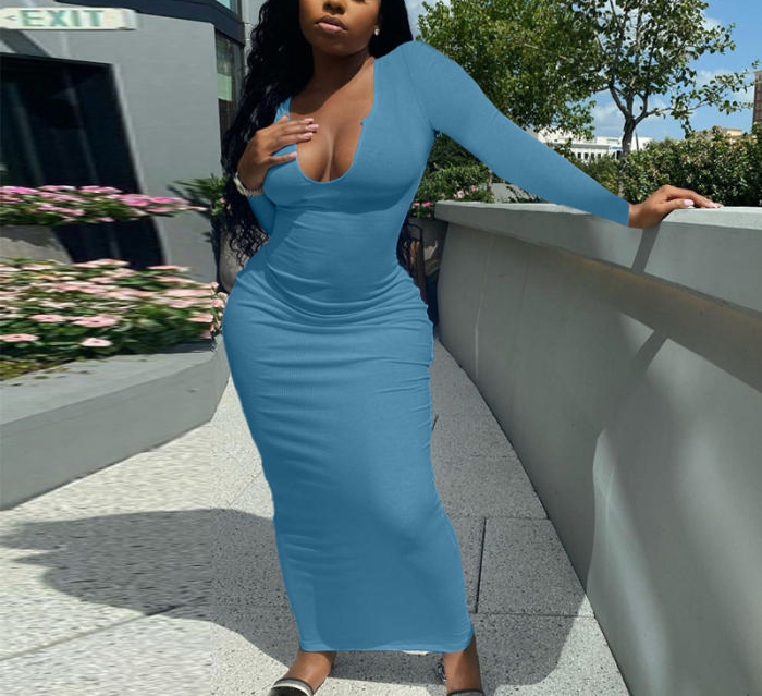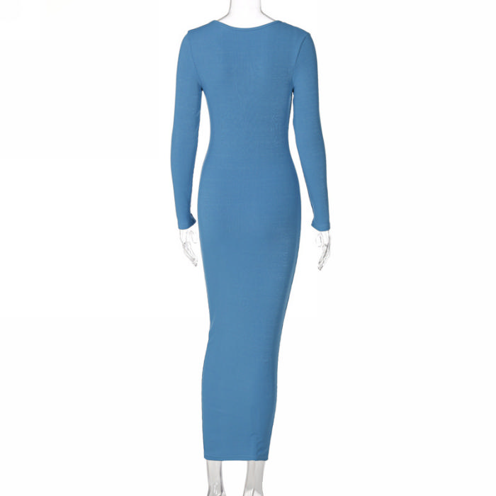 (Real Image)2022 Styles Women Fashion INS Styles Rib Long Sleeve Maxi DressSKU: #CF22632-4