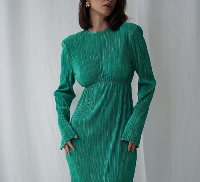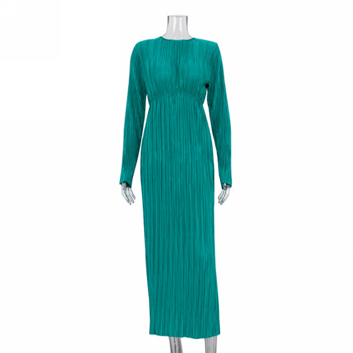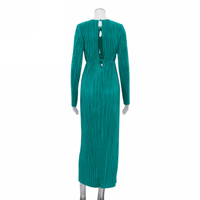 (Real Image)2022 Styles Women Fashion INS Styles Rib Solid Color Long Sleeve Maxi DressSKU: #CF72021-1