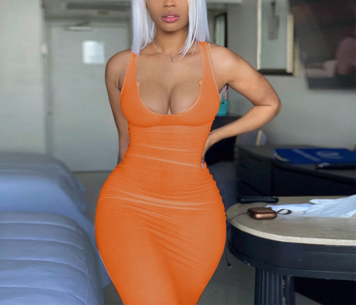 (Real Image)2022 Styles Women Fashion INS Styles Rib Summer Mini DressSKU: #CF22634-6
