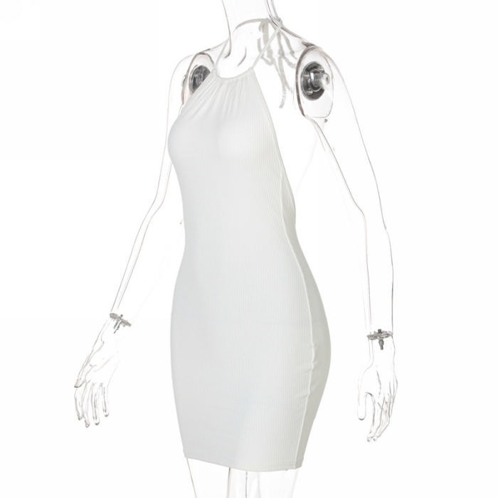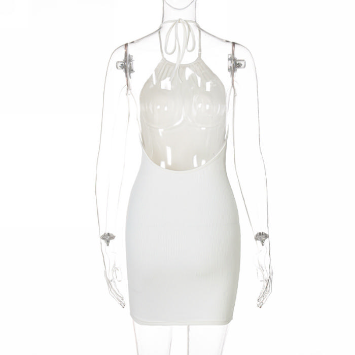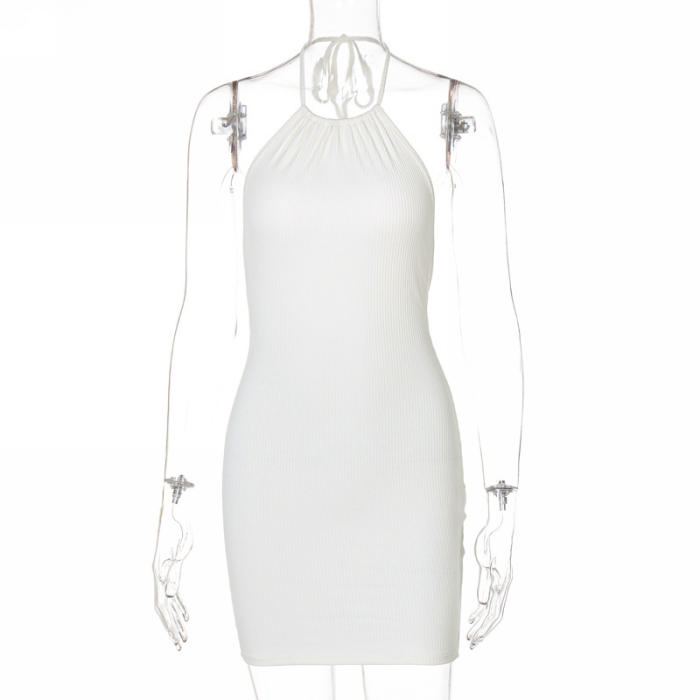 (Real Image)2022 Styles Women Fashion INS Styles Rib Tie Backless Mini DressSKU: #CF22625-2