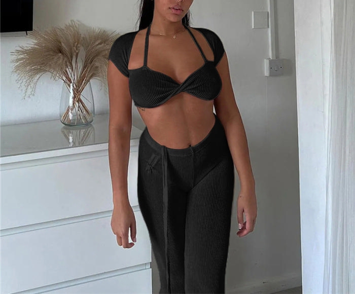 (Real Image)2022 Styles Women Fashion INS Styles Rib Two Piece SuitSKU: #CF12306-1