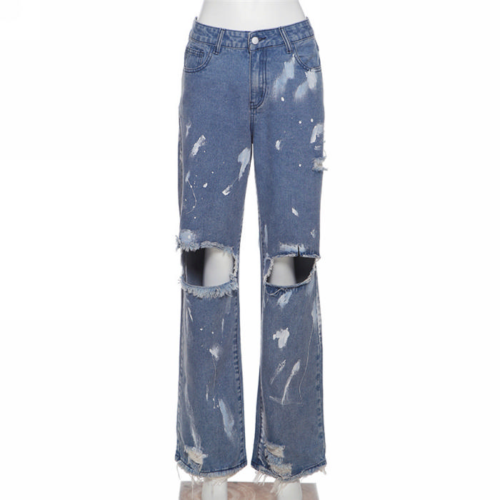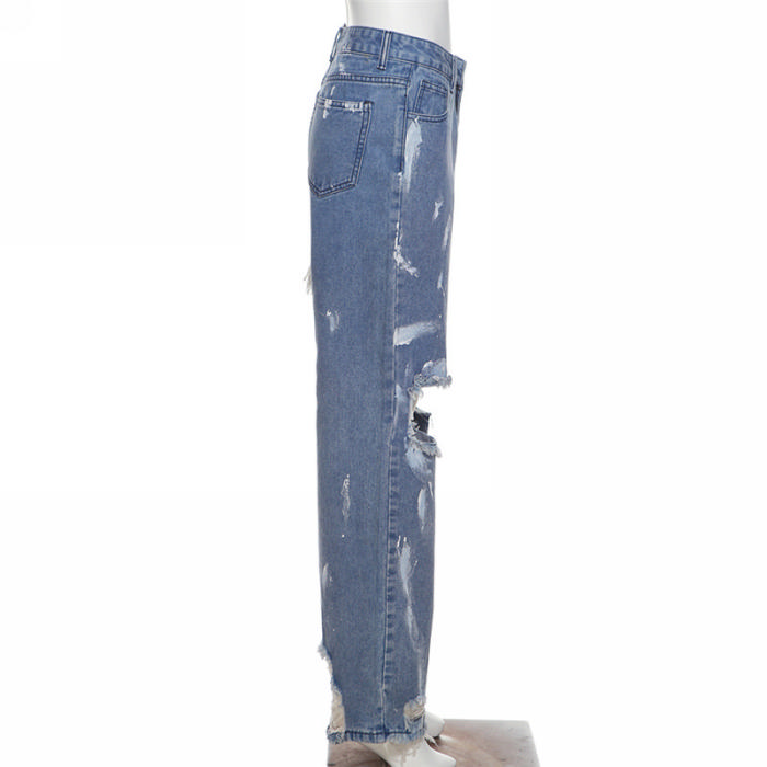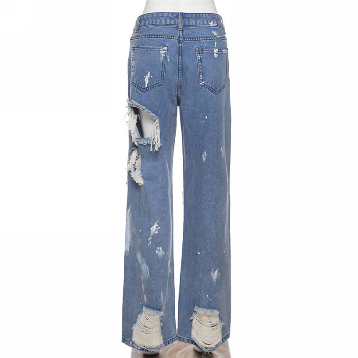 (Real Image)2022 Styles Women Fashion INS Styles Ripped Hollow Jean Long PantsSKU: #CF49747-1