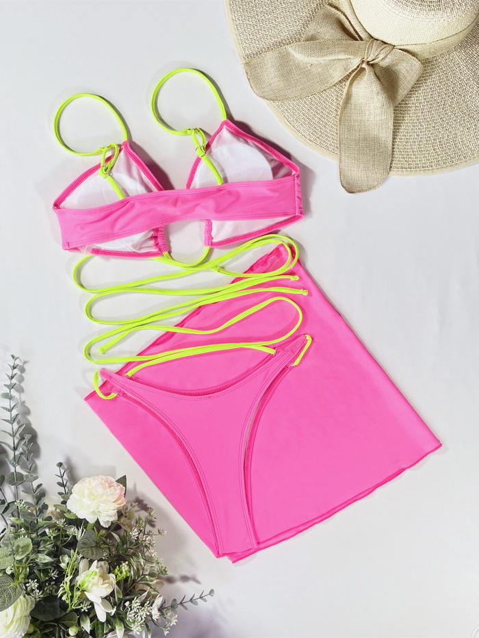 (Real Image)2022 Styles Women Fashion INS Styles Rose Bikini Set+Skirts 3 Piece SwimsuitsSKU: #CF60040-1