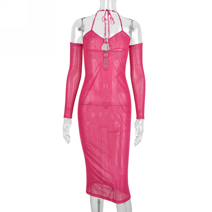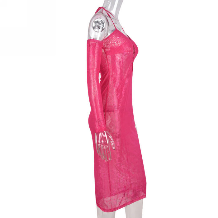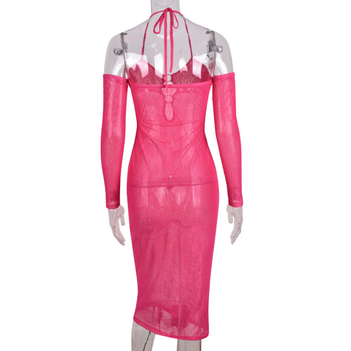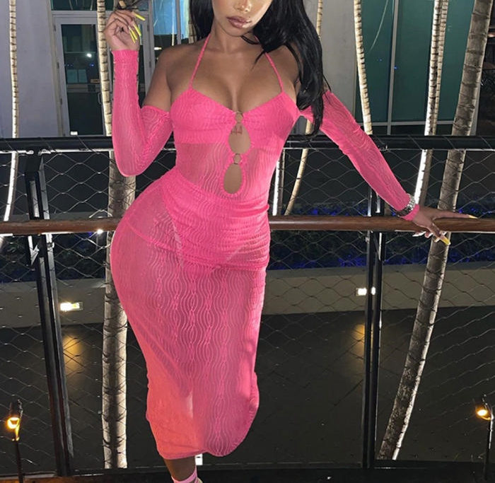 (Real Image)2022 Styles Women Fashion INS Styles Rose Net Mesh Maxi DressSKU: #CF59204-1