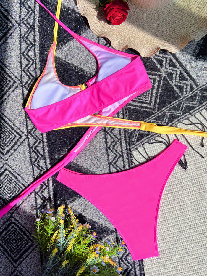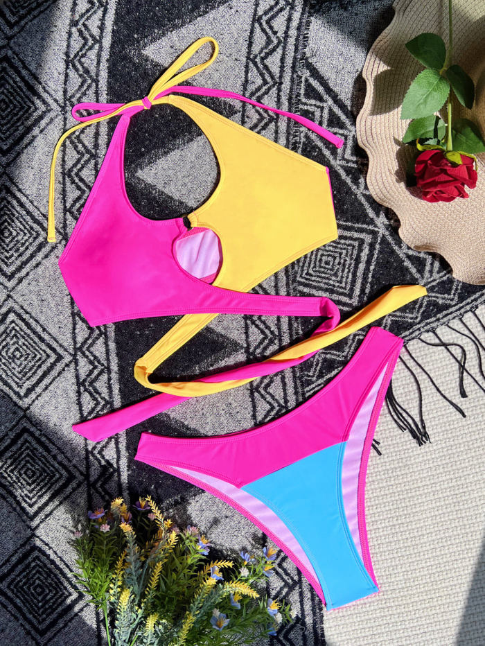 (Real Image)2022 Styles Women Fashion INS Styles Rose&Yellow Contrast Color Bikini SetSKU: #CF60076-1
