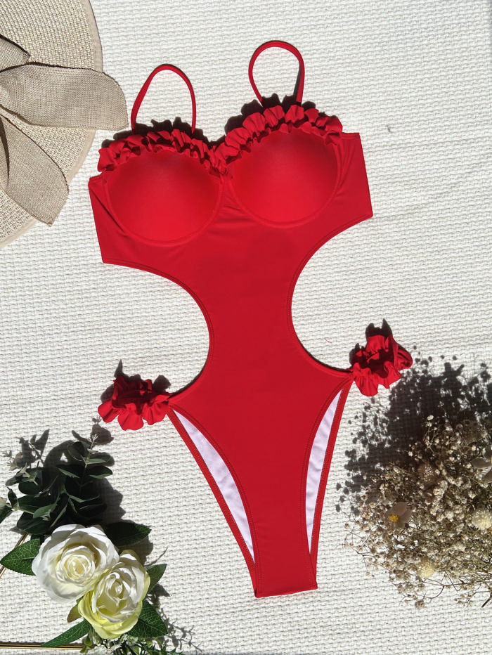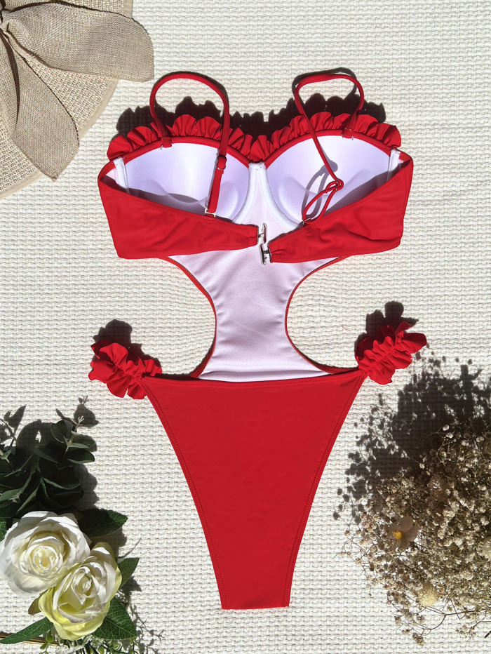 (Real Image)2022 Styles Women Fashion INS Styles Ruffle Cut Out One Piece SwimwearSKU: #CF60071-1