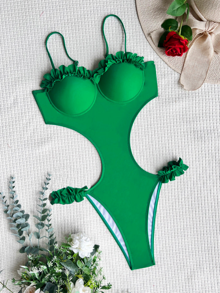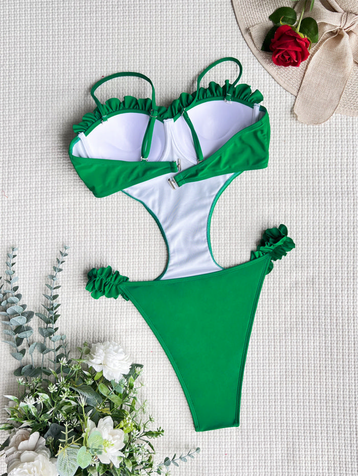 (Real Image)2022 Styles Women Fashion INS Styles Ruffle Cut Out One Piece SwimwearSKU: #CF60071-3