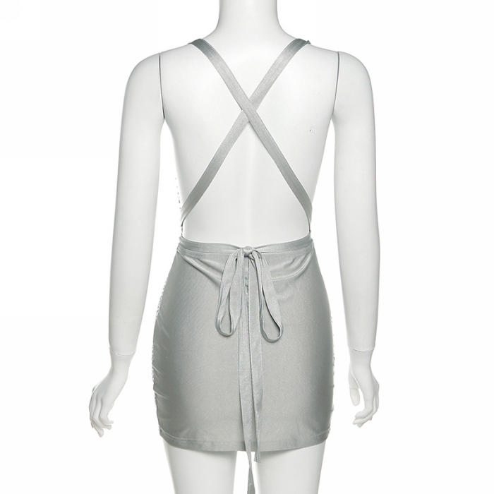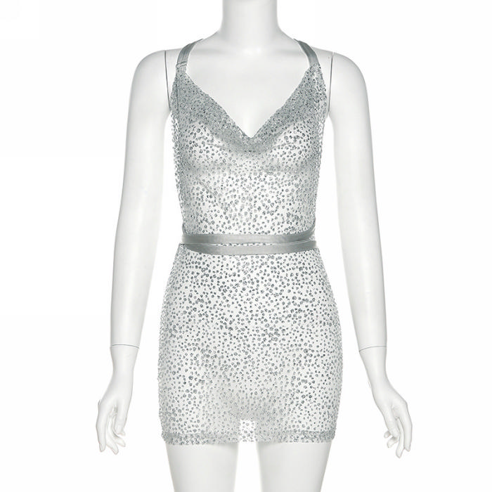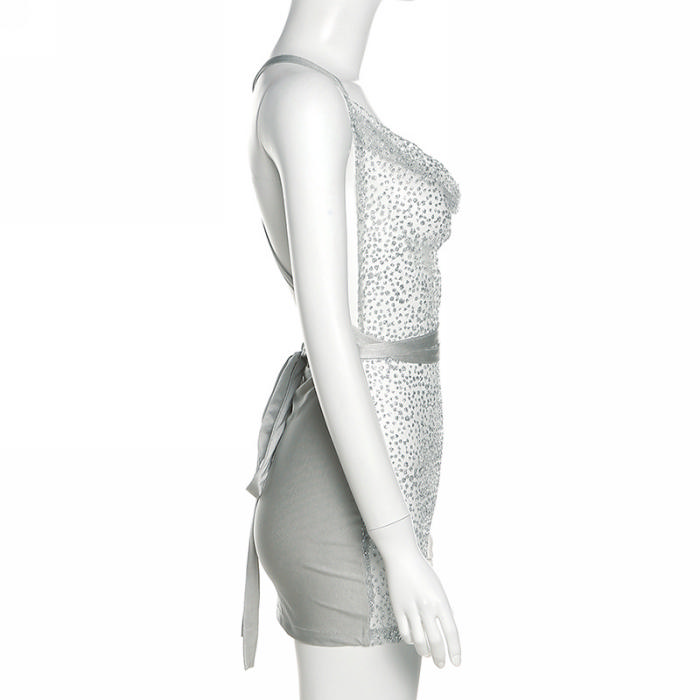 (Real Image)2022 Styles Women Fashion INS Styles Sequin Mesh Backless Mini DressSKU: #CF48709-1