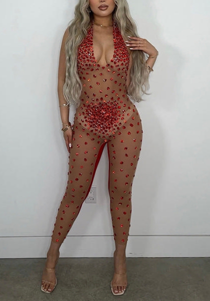 (Real Image)2022 Styles Women Fashion INS Styles Sequin Mesh JumpsuitSKU: #OM0209-1