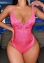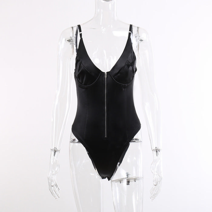 (Real Image)2022 Styles Women Fashion INS Styles Silk Front Zipper BodysuitSKU: #XF92525-1