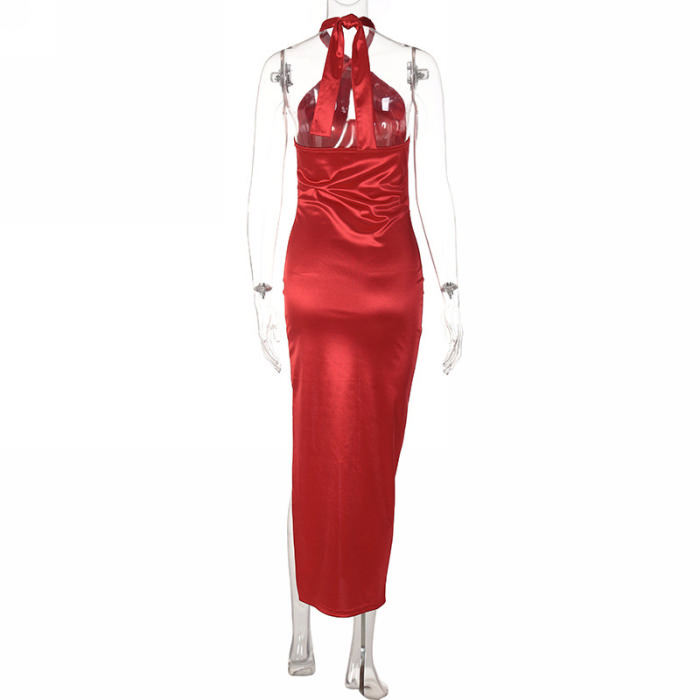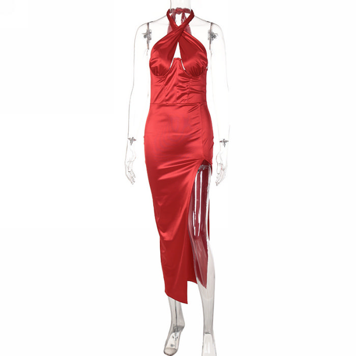 (Real Image)2022 Styles Women Fashion INS Styles Silk High Split Maxi DressSKU: #CF22573-1