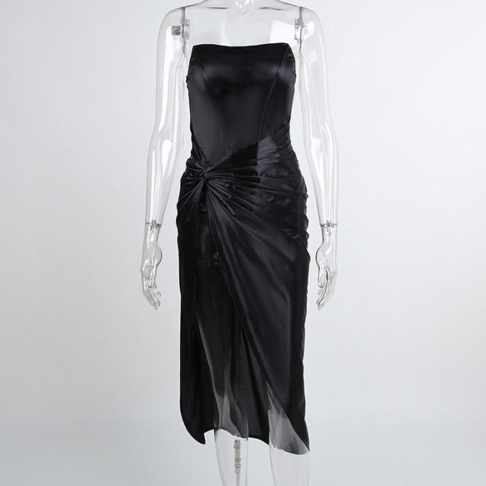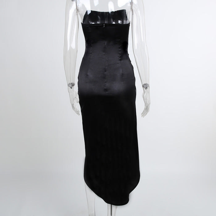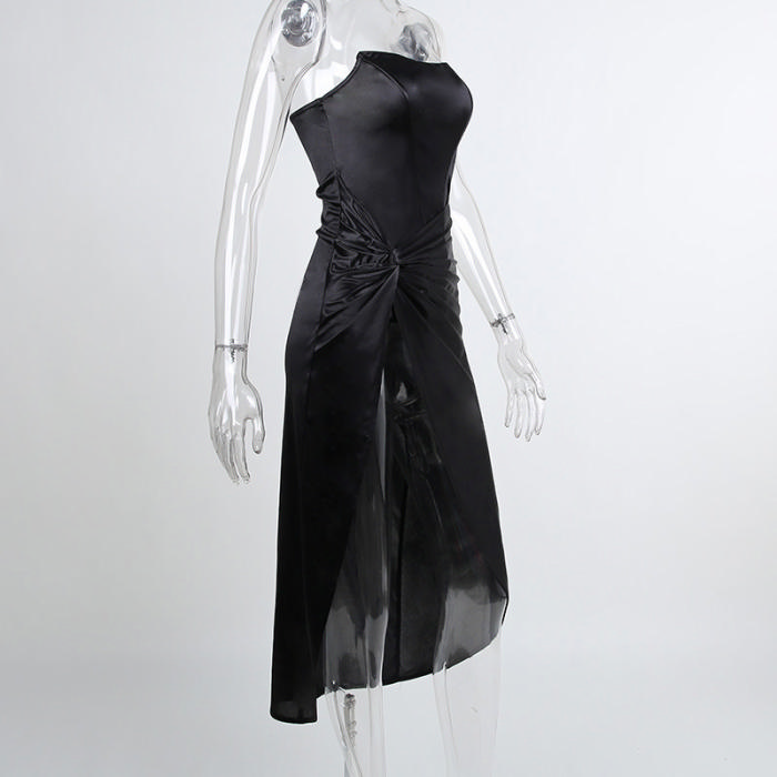 (Real Image)2022 Styles Women Fashion INS Styles Silk Irregular Maxi DressSKU: #XF92502-1