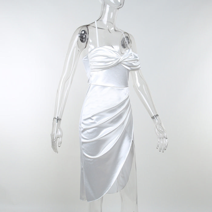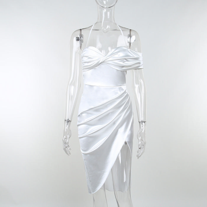 (Real Image)2022 Styles Women Fashion INS Styles Silk Irregular Mini DressSKU: #XF92504-1