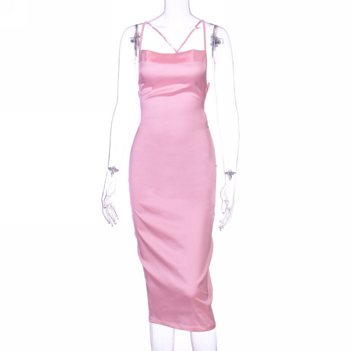 (Real Image)2022 Styles Women Fashion INS Styles Silk Strap Summer Midi DressSKU: #CF22635-7