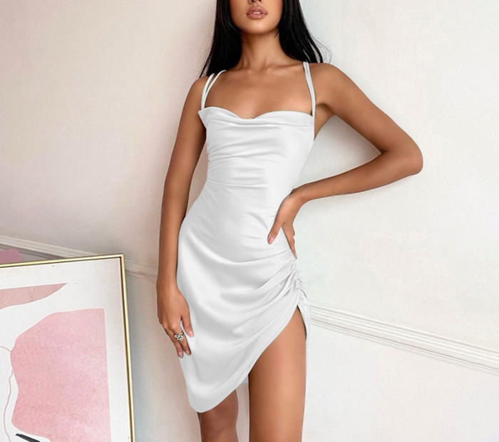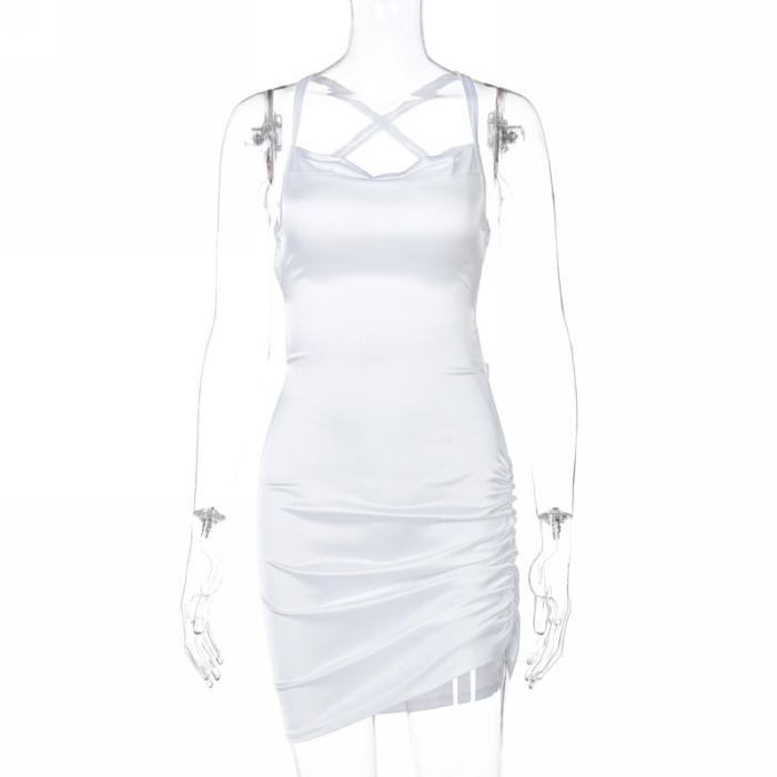 (Real Image)2022 Styles Women Fashion INS Styles Silk Summer Mini DressSKU: #CF22631-1