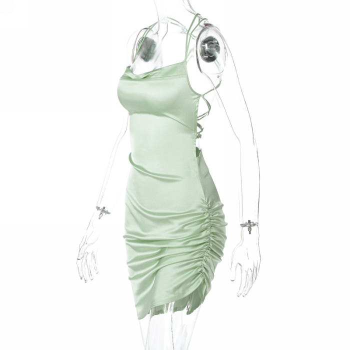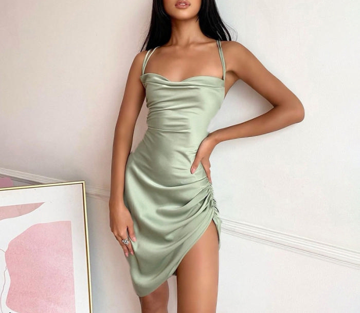 (Real Image)2022 Styles Women Fashion INS Styles Silk Summer Mini DressSKU: #CF22631-4