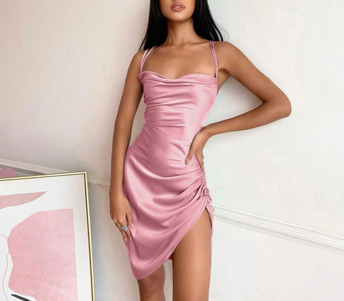 (Real Image)2022 Styles Women Fashion INS Styles Silk Summer Mini DressSKU: #CF22631-2
