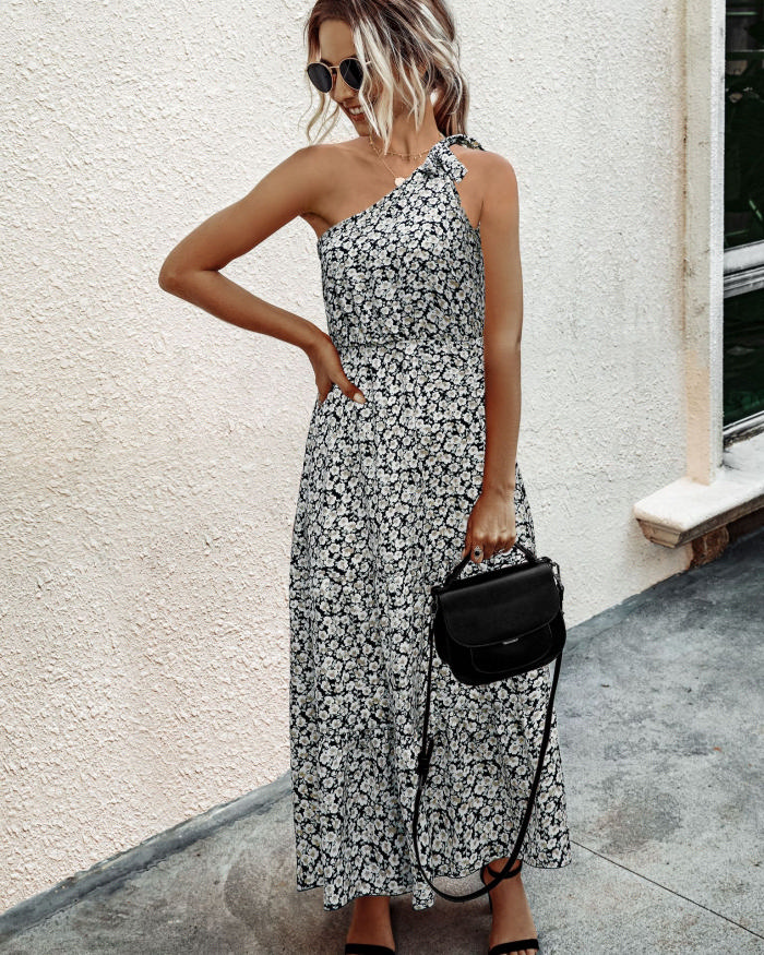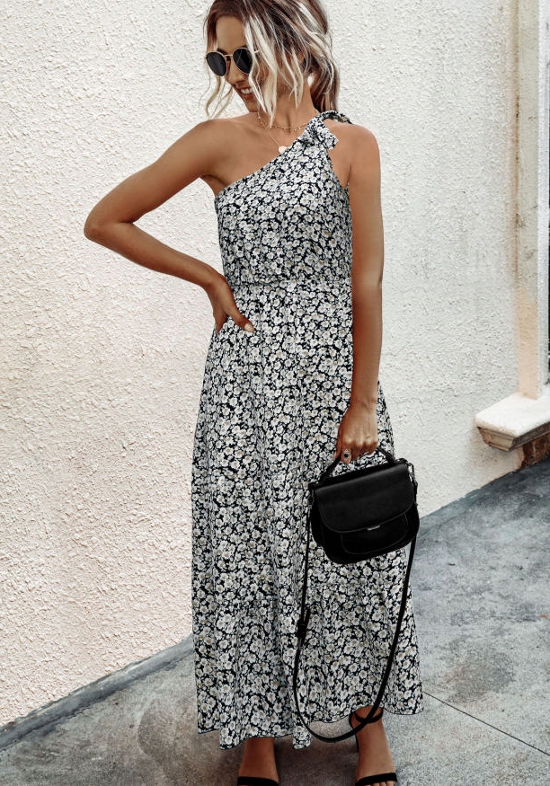 (Real Image)2022 Styles Women Fashion INS Styles Single Shoulder Bohemian Maxi DressSKU: #XF28393-4