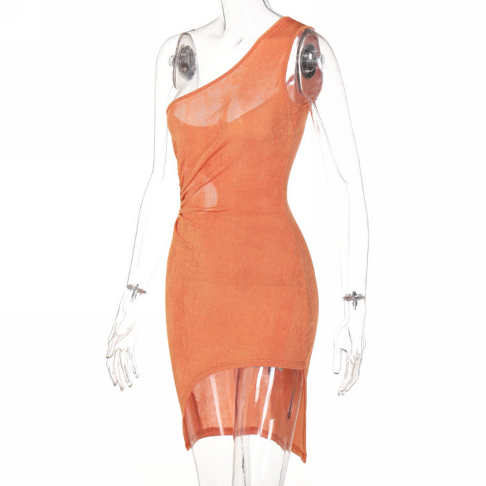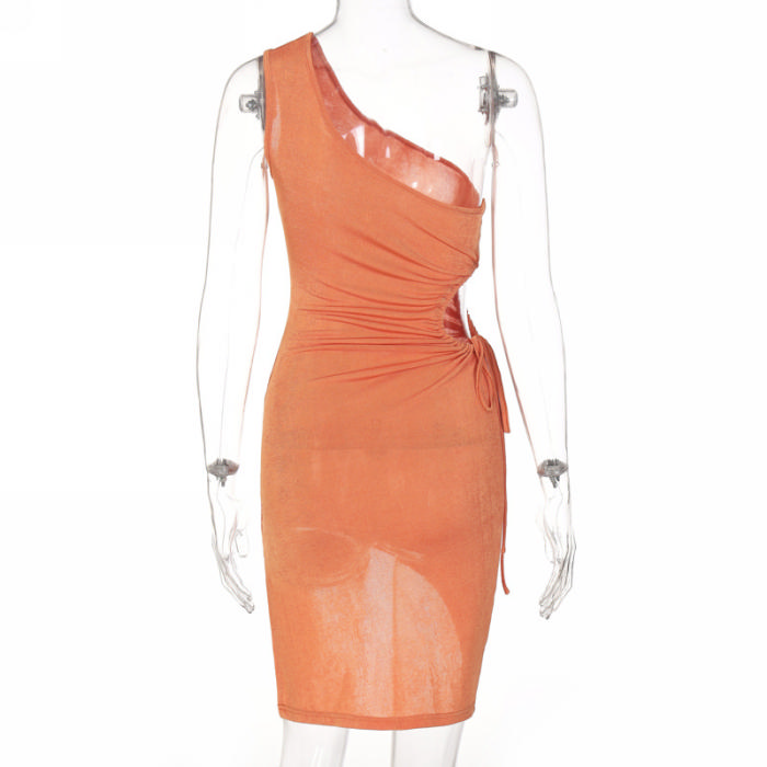 (Real Image)2022 Styles Women Fashion INS Styles Single Shoulder Cut Out Mini DressSKU: #CF22592-1